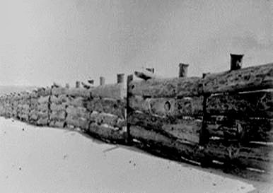 a uma certa distância da mais avançada linha de marés, uma paliçada ou um