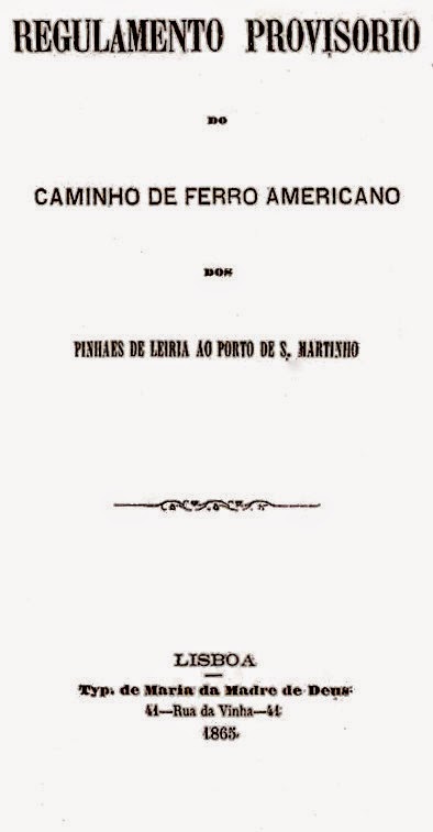Caminho de Ferro Americano – Comboio Americano maio 21, 2015 Excerto do Regulamento Provisório do Caminho de Ferro Americano dos Pinhaes de Leiria ao Porto de S. Martinho – 1865. Partilhar Obter link Facebook Twitter Pinterest Email Outras aplicações Etiquetas Comboio Americano Pedreanes Transportes Partilhar Obter link Facebook Twitter Pinterest Email Outras aplicações Comentários
