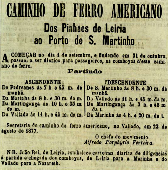 Horário do Caminho de Ferro Americano em 1877 outubro 19, 2015 In: "Diário Ilustrado", nº 1635, Ano 6, Quarta-feira, 29 de Agosto de 1877 (Biblioteca Nacional de Portugal – Biblioteca Nacional Digital) Partilhar Obter link Facebook Twitter Pinterest Email Outras aplicações Etiquetas Comboio Americano Pedreanes Transportes Partilhar Obter link Facebook Twitter Pinterest Email Outras aplicações Comentários