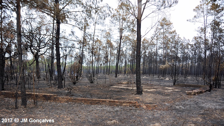 Com o incêndio de 15 Outubro de 2017 o Pinhal do Rei ficou limpo, talvez como poucas vezes esteve, todavia, morto em vez de vivo e verdejante.