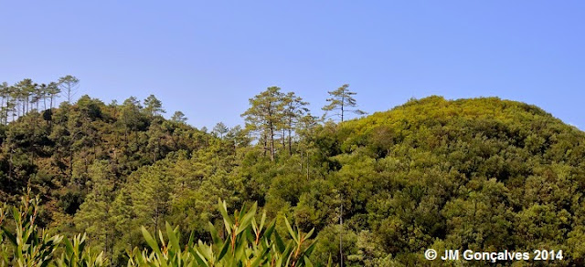 prosseguindo, mais à frente, após estas. Também a estrada florestal coincidente